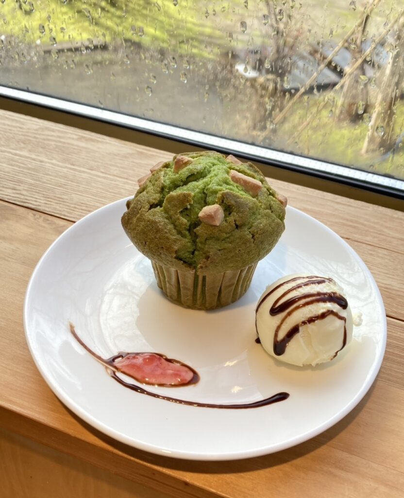 抹茶&ホワイトチョコマフィン🍨バニラアイス添え